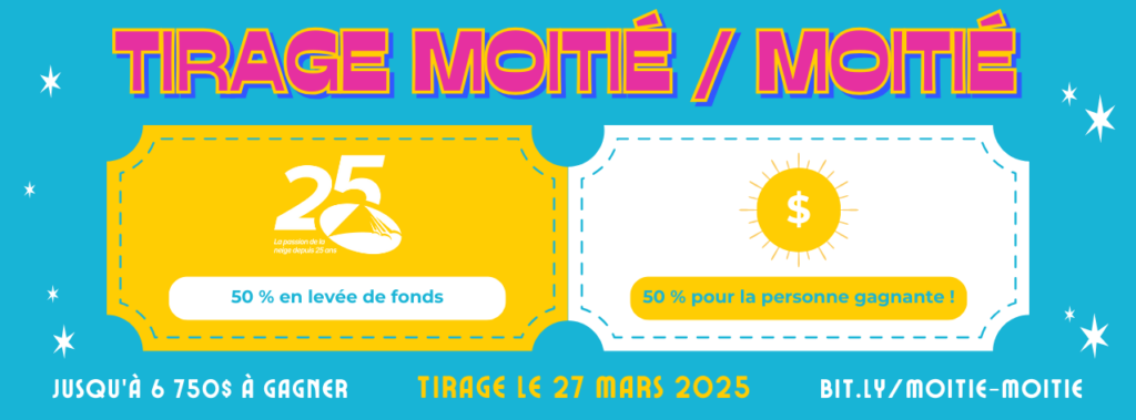Félicitations à la gagnante ! Nous avons le plaisir de vous annoncer qui est la personne gagnante : 1️⃣🎉 Félicitations à Stéphanie Thibaud de Mont-Joli, qui a eu la chance de remporter 50% du montant amassé, soit 540$ ! Un tirage spécial pour notre 25e anniversaire Dès le mardi 11 février, participez à notre moitié-moitié spécial