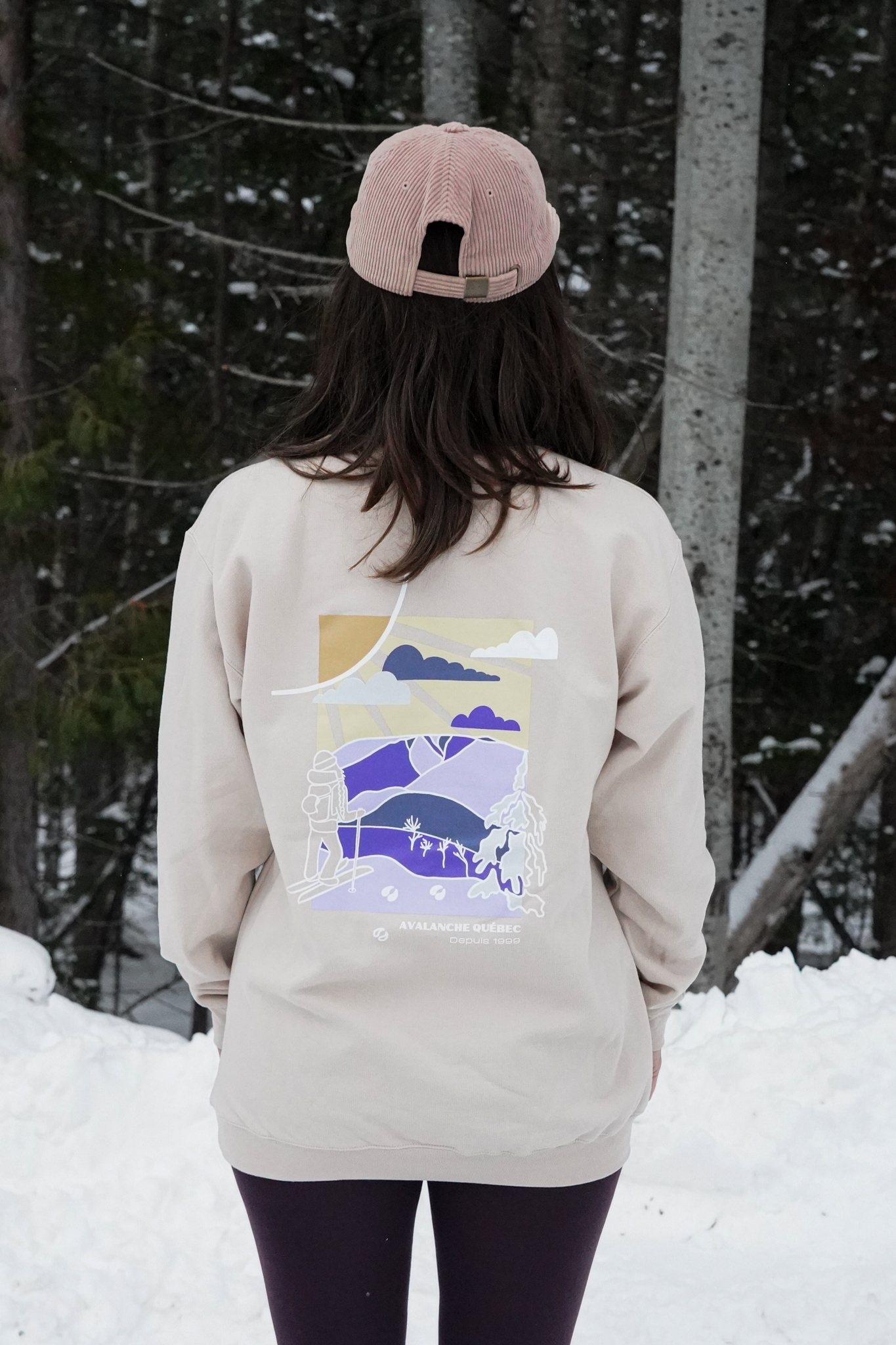 Crewneck fleece with illustrations specially designed by Catheryne Bossé, screen-printed in Québec!