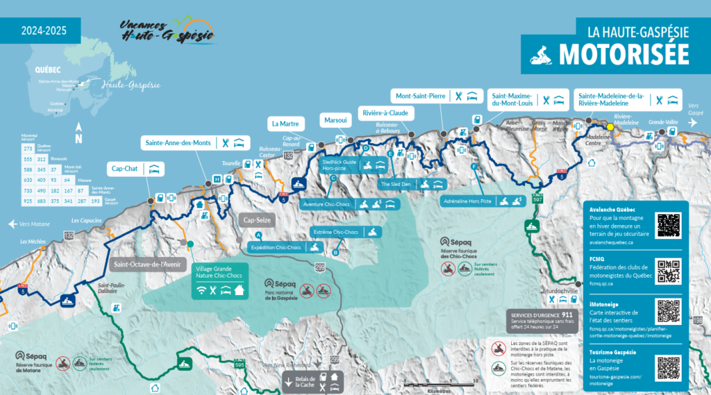 Vacances Haute-Gaspésie vous propose la carte « La Haute-Gaspésie motorisée » qui recense toutes sortes de services et leurs coordonnées. La version la plus à jour de cette carte se trouve aussi ici.